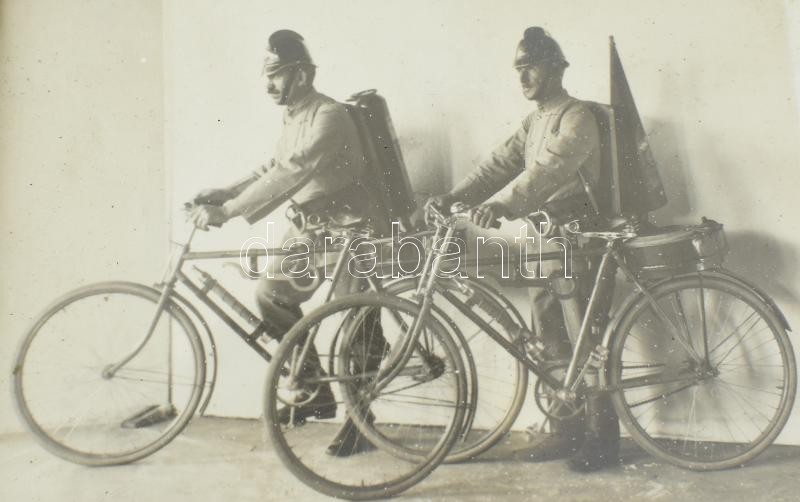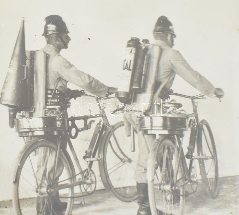 cca 1930 2 db tűzoltó biciklin, fotó, üvegezett keretben, 11x16 cm, 16... https://www.darabanth.com/de/35-Gross-Auktion/35.1/Fotografie/Foto~14817/cca-1930-2-db-tuzolto-biciklin-foto-uvegezett-keretben-11x16-cm-16x11-cm~II2342097