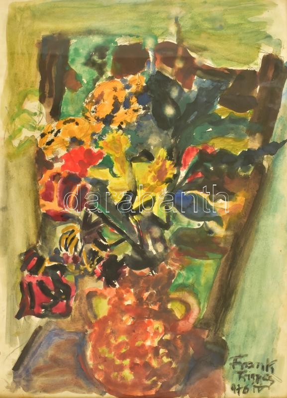 Frank Frigyes (1890-1976): Virágcsendélet. Akvarell, ceruza, papír, jelzett. Üvegezett fa keretben. 58,5×42 cm / Frigyes Frank (1890-1976): Still life. Watercolour and pencil on paper, signed. Framed with glass. 58,5×42 cm
