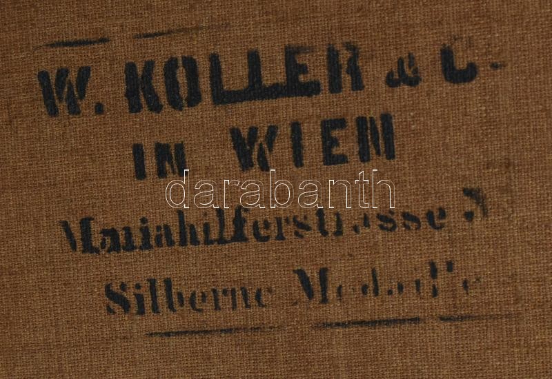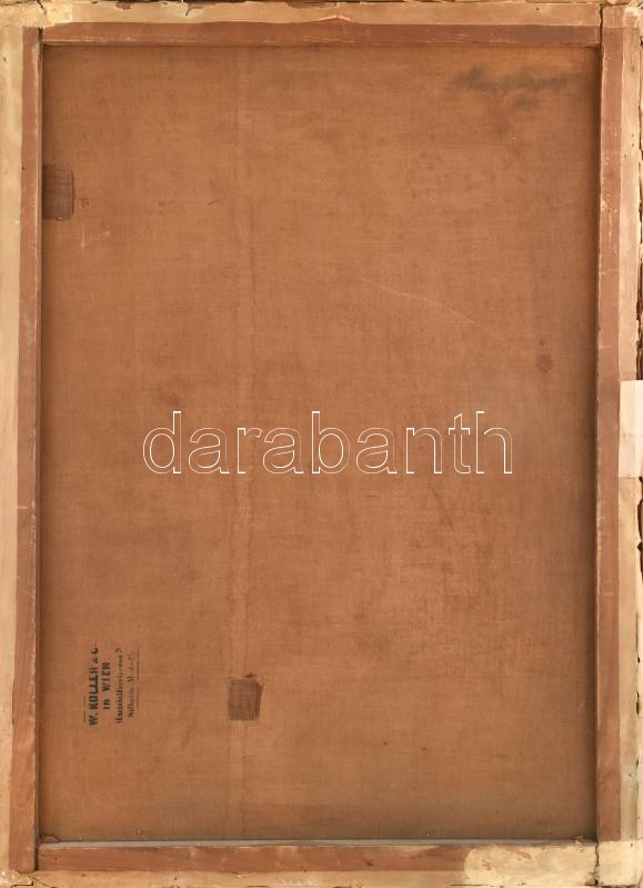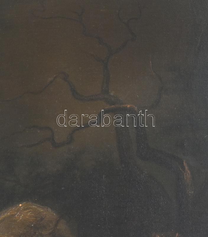 Mezey Lajos (1820-1880): Romantikus táj, 1879. Olaj, vászon. Jelzett a hátoldalán. Restaurált. Antik fa keretben. 98,5x71 cm / Lajos Mezey (1820-1880): Romantic landscape, 1879. Oil on canvas. Signed on the reverse. Restored. In antique frame. 98,5x71 cm