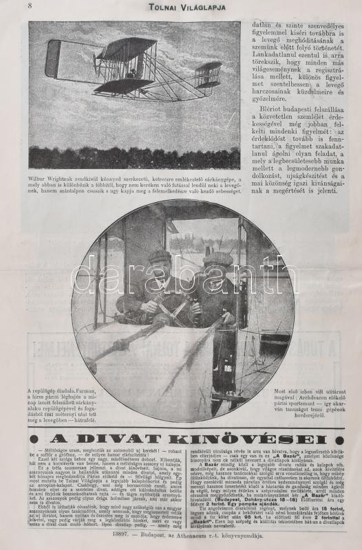 1909 A Tolnai Világlapja kiadványa a legkorábbi repülőkről Bleriot fel... https://www.darabanth.com/de/35-Gross-Auktion/35.1/Kunst-Dokumente-andere-Sammelgebiete/Drucksachen~14825/1909-A-Tolnai-Vilaglapja-kiadvanya-a-legkorabbi-repulokrol-Bleriot-felszallasa-alkalmaval-~II2368287