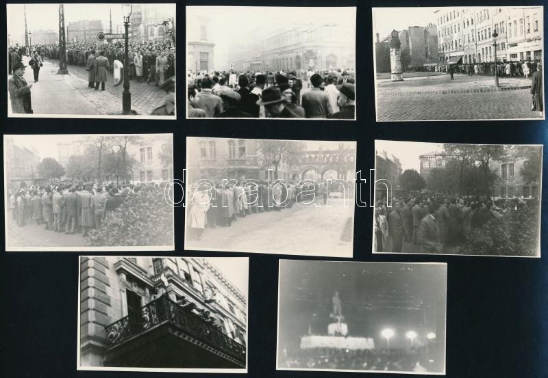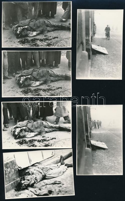 Beschreibung: 1988-1989 Inconnu Független Művészeti Csoport FelhÃvása a Rákoskeresztúri KöztemetÅ‘ 301-es parcellájában állÃtandó kopjafák ügyében, adomány gyűjtés részére. A kezdeményezés védnökeinek névsorával (pl.:Krassó György, Mécs Imre...stb.) "A cÃmet ellenÅ‘riztem. A kiadvány hiteléül." után Dienes István (1929-1995) régész, muzeológus aláÃrásával. + 1956 22 db fotó az 1956-os eseményekrÅ‘l, 6x8 cm