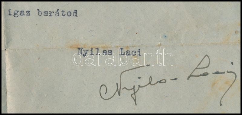 cca 1932 Nyilas László, a Nemzeti Sport riporterének gépelt levele Déri Károlynak (1910-1997) a Törekvés SE labdarúgójának, saját kezű aláírásával, a Nemzeti Sport borítékjával.