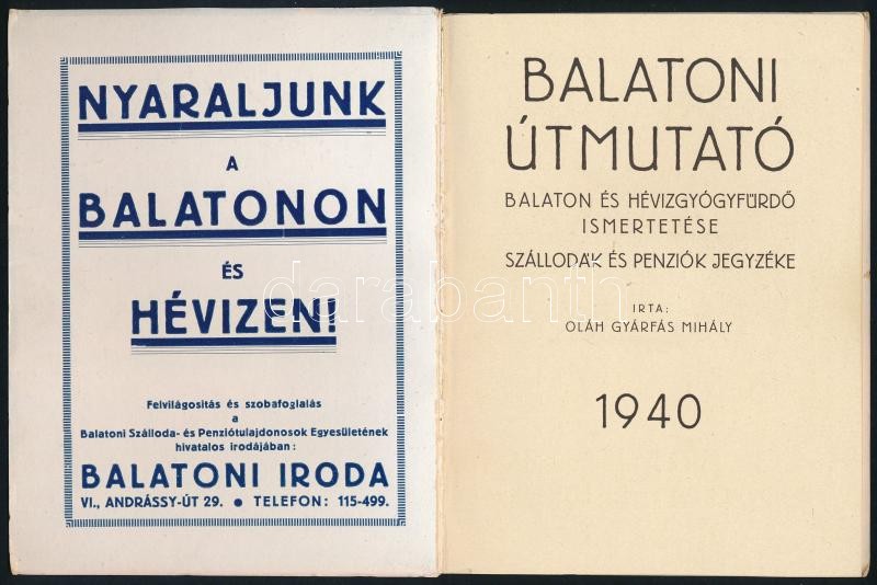 1940 Balaton útmutató. Balaton és HévÃzgyógyfürdÅ‘ ismertetése. Szállod... https://www.darabanth.com/de/35-Gross-Auktion/35.1/Kunst-Dokumente-andere-Sammelgebiete/Schiffe-Plattensee~14821/1940-Balaton-utmutato-Balaton-es-Hevizgyogyfurdo-ismertetese-Szallodak-es-penziok-jeg~II2351036