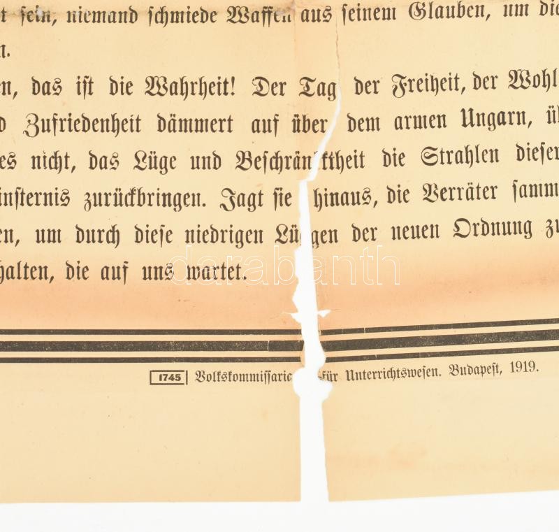 1919 Bp., "Proletarier aller Länder, vereinigt Euch!" - néme... https://www.darabanth.com/de/35-Gross-Auktion/35.1/Poster/Poster~14826/1919-Bp-Proletarier-aller-Lander-vereinigt-Euch-nemet-nyelvu-plakat-a-Tanacskoztarsas~II2372994