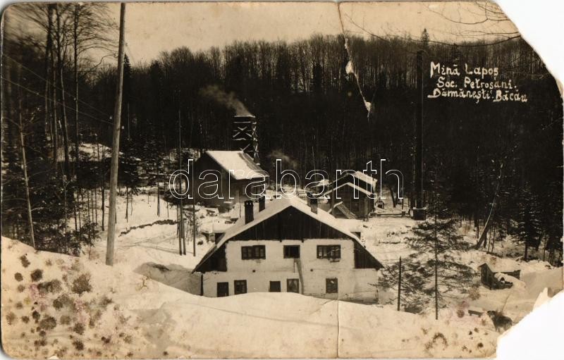 Beschreibung: Darmanesti, Dormánfalva; Lapos-bánya télen / Mina Lapos, Soc. "Petrosani", Bacau / mine in winter. photo (erősen sérült / badly damaged)