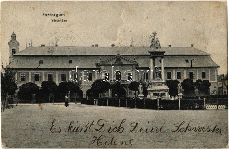 Esztergom, Városháza, Szentháromság szobor (EK) https://www.darabanth.com/de/350-Fernauktion/350.0/Ansichtskarten/Ungarn~2500005/Esztergom-Varoshaza-Szentharomsag-szobor-EK~II1993028