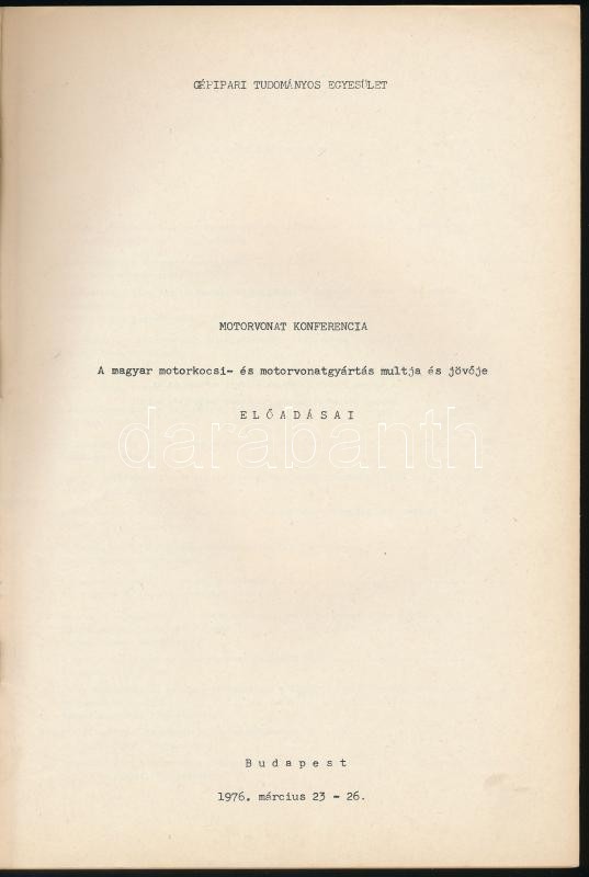 Motorvonat konferencia előadásai. A magyar motorkocsi- és motorvonatgyártás múltja és jövője. Bp.,1976, Gépipari Tudományos Egyesület. Kiadói papírkötés. Megjelent 230 példányban.