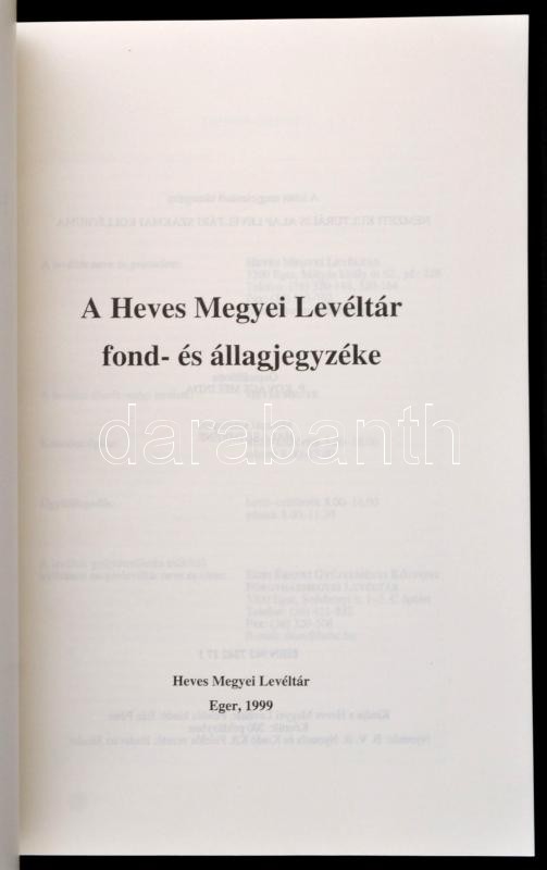 A Heves Megyei Levéltár fond és állagjegyzéke. Eger, 1999. 116p .Papírborítékban. Csak 200 pld.