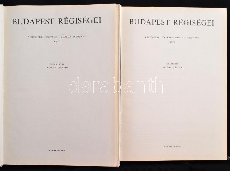 Budapest Régiségei XXII-XIII. A Budapesti Történeti Múzeum Évkönyve. Szerk.: Tarjányi Sándor. Bp., 1971-1973, BTM. Kiadói egészvászon kötés, kiadói papír védőborítóban. Megjelent 1270, és 1150 példányban