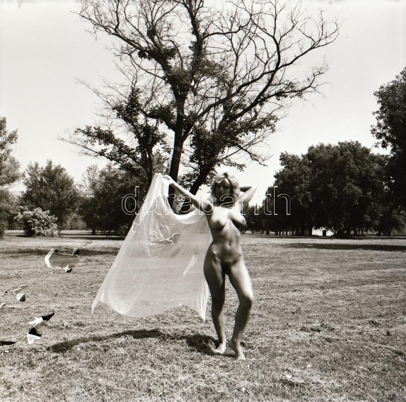 cca 1980 Jóleső expozíciók, szolidan erotikus felvételek, 4 db vintage negatív (6x6 cm) + 4 db vintage fénykép, 9x12 cm (a negatívok és a pozitív képek között nincs összefüggés)