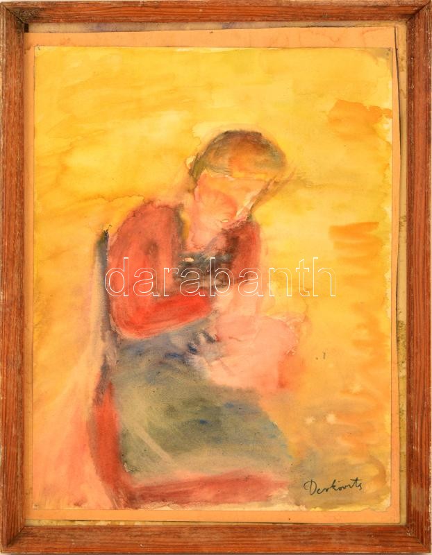Beschreibung: Derkovits jelzéssel: Női alak. Akvarell, papír, üvegezett keretben, 36×27 cm