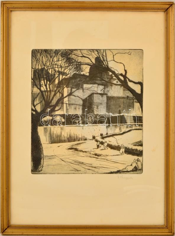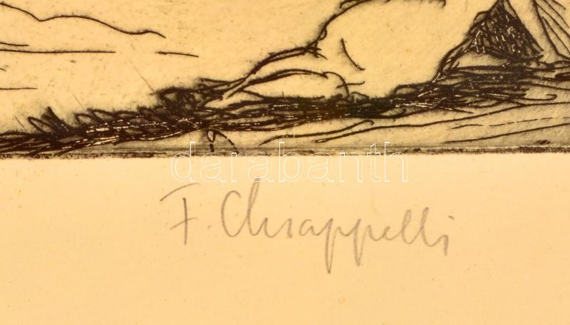 Beschreibung: Francesco Chiappelli (1890-1947): Firenze. Rézkarc, papír, jelzett, üvegezett keretben, 35×29 cm