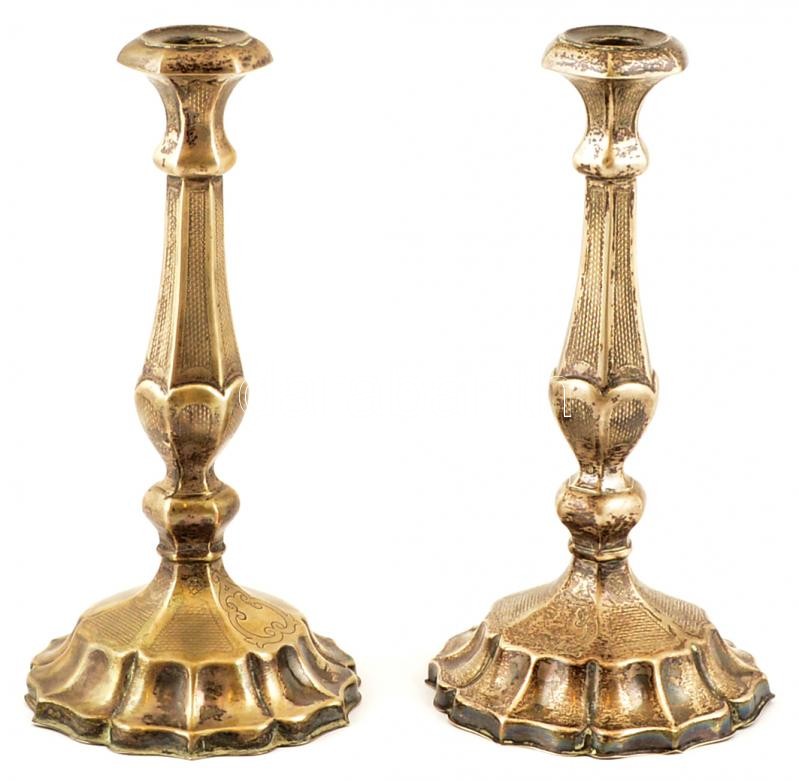 Beschreibung: Ezüst (Ag.) gyertyatartó párban, jelzett, mesterjeggyel, vésett díszítésekkel, m:27,5 cm, nettó:479 g (együtt)