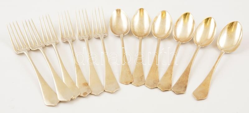 Beschreibung: Ezüst (Ag.) közepes kanalak és villák ( 6-6 db), jelzett, összesen nettó: 397 g h:14,5 és 17 cm (6×)