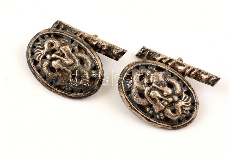 Beschreibung: Ezüst (Ag.) sárkánymotívumos mandzsettagomb pár, jelzett, nettó: 6.2 gr.