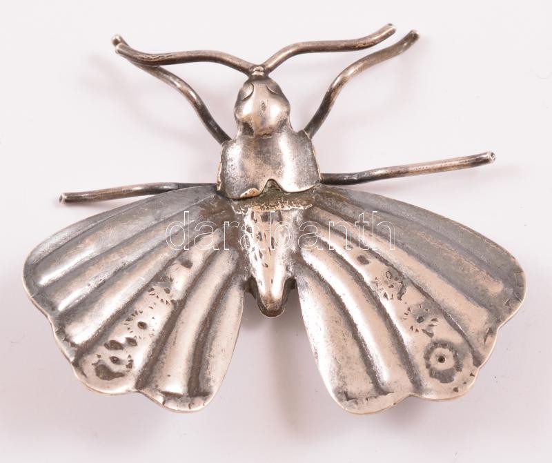 Ezüst(Ag) pillangó, jelzés nélkül, 4×4 cm, nettó: 8 g https://www.darabanth.com/de/350-Fernauktion/350.0/Juwelen/Juwelen~51/EzustAg-pillango-jelzes-nelkul-4C3974-cm-netto-8-g~II1941624