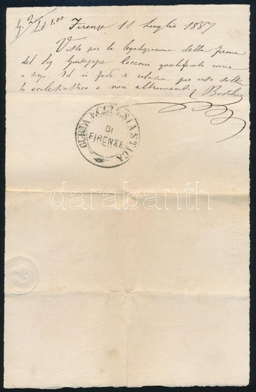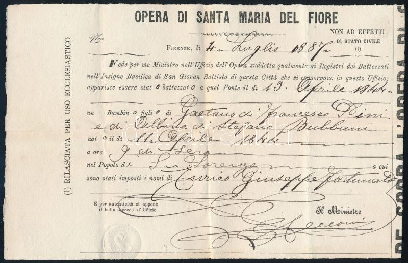 1887 Firenze, Opera di Santa Maria del Fiore által kiállított irat https://www.darabanth.com/de/350-Fernauktion/350.0/Kunst-Dokumente-andere-Sammelgebiete/Dokument~17/1887-Firenze-Opera-di-Santa-Maria-del-Fiore-altal-kiallitott-irat~II1990751