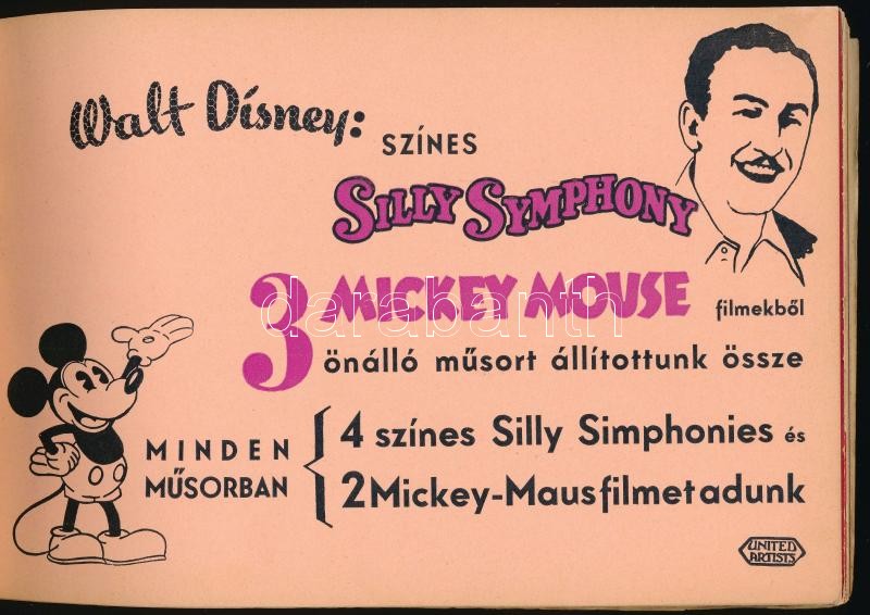 1934-35 Az United Artists és a City Film filmeket bemutató kiadványa. 33 l- + 1 kihajtható facsimile színészek aláírásaival 24x16 cm, kis sarokhiánnyal