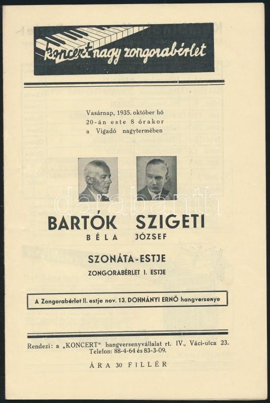 1935 Bartók Béla és Szigeti József szonátaestjének műsora, sok reklámm... https://www.darabanth.com/de/350-Fernauktion/350.0/Kunst-Dokumente-andere-Sammelgebiete/Drucksachen~31/1935-Bartok-Bela-es-Szigeti-Jozsef-szonataestjenek-musora-sok-reklammal~II1991228