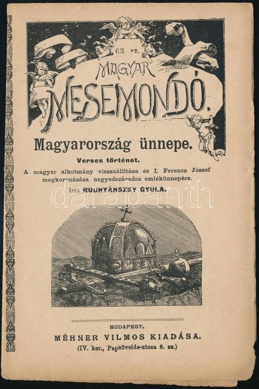 cca 1890 Rudnyánszky Gyula: Magyarország ünnepe. Verses történet. Magy... https://www.darabanth.com/de/350-Fernauktion/350.0/Kunst-Dokumente-andere-Sammelgebiete/Drucksachen~31/cca-1890-Rudnyanszky-Gyula-Magyarorszag-unnepe-Verses-tortenet-Magyar-mesemondo-63-sz-Bp~II1990780