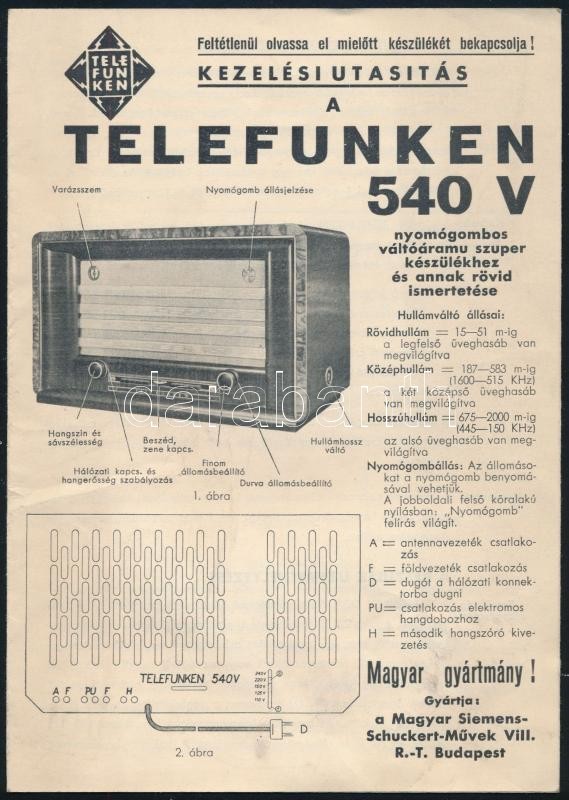cca 1940-1950 Telefunken 540 V rádió kezelési útmutatója https://www.darabanth.com/de/350-Fernauktion/350.0/Kunst-Dokumente-andere-Sammelgebiete/Drucksachen~31/cca-1940-1950-Telefunken-540-V-radio-kezelesi-utmutatoja~II1990850