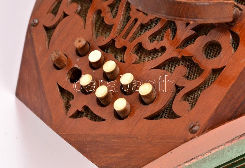 Concertina harmonika, 21 gombos, sérült gombokkal, működik / Concertin... https://www.darabanth.com/de/350-Fernauktion/350.0/Kunst-Dokumente-andere-Sammelgebiete/Flohmarkt~11/Concertina-harmonika-21-gombos-serult-gombokkal-mukodik-Concertina-21-key-accordion-some-b~II1952073