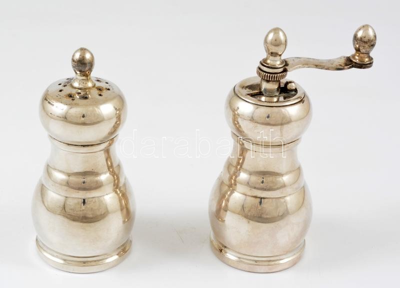 Ezüstözött alpakka bors és sószóró, jelzés nélkül, m:10 cm (2×) https://www.darabanth.com/de/350-Fernauktion/350.0/Kunst-Dokumente-andere-Sammelgebiete/Flohmarkt~11/Ezustozott-alpakka-bors-es-soszoro-jelzes-nelkul-m10-cm-2C397~II1961739