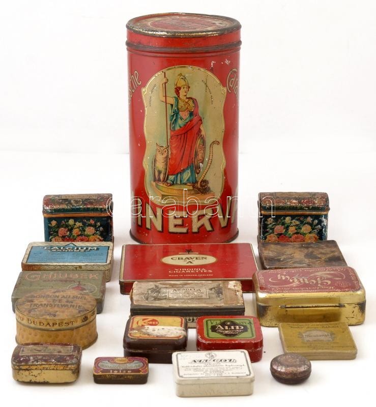 Régi fém dobozok, különböző méretekben, 17 db https://www.darabanth.com/de/350-Fernauktion/350.0/Kunst-Dokumente-andere-Sammelgebiete/Flohmarkt~11/Regi-fem-dobozok-kulonbozo-meretekben-17-db~II1920440