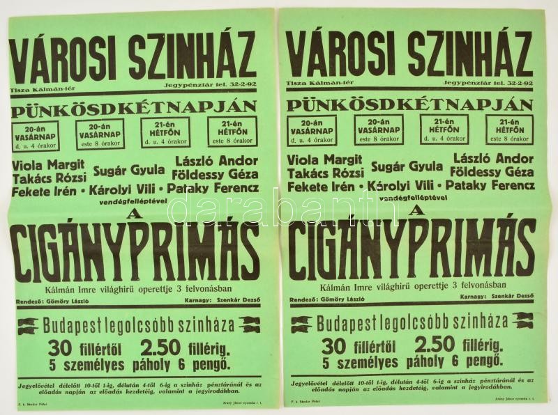 cca 1930 Városi színház 2 db műsorplakát 31x47 cm https://www.darabanth.com/de/350-Fernauktion/350.0/Kunst-Dokumente-andere-Sammelgebiete/Plakat~54/cca-1930-Varosi-szinhaz-2-db-musorplakat-31x47-cm~II1993084