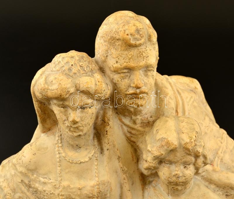 1916 IV. Károly osztrák-magyar császár és király, Zita császár és királyné, és fiúk Ottó királyi herceget ábrázoló gipsz büszt, 1916 felirattal, jelzés nélkül, kopott, lepattanássokkal, 17x8x16,5
