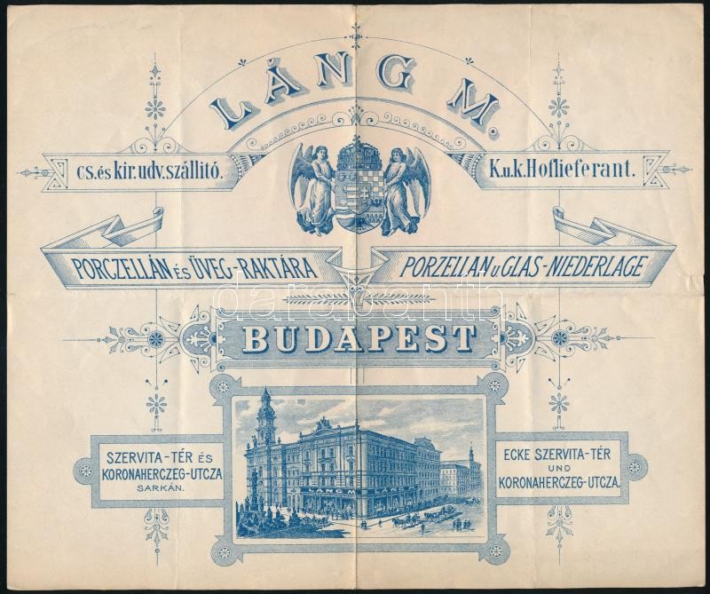 1905 Bp., Láng porcelán és üvegraktára Budapest Szervita tér reklám https://www.darabanth.com/de/350-Fernauktion/350.0/Kunst-Dokumente-andere-Sammelgebiete/Werbungen~21/1905-Bp-Lang-porcelan-es-uvegraktara-Budapest-Szervita-ter-reklam~II1990982