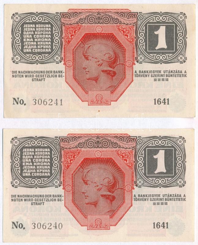 Beschreibung: 1916. 1K (2x) sorszámkövetők, mindkettő "DEUTSCHÖSTERREICH" felülbélyegzéssel T:I-
