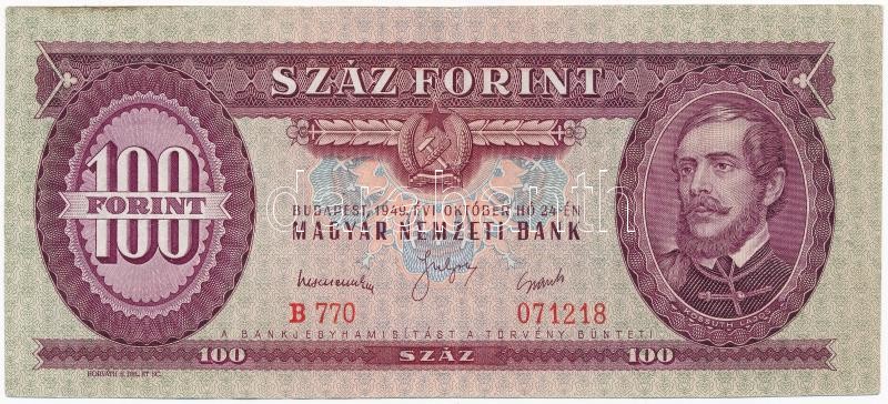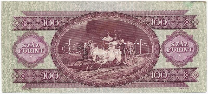1949. 100Ft T:III tolódott nyomat https://www.darabanth.com/de/350-Fernauktion/350.0/Numismatik/Ungarische-Banknoten~1000007/1949-100Ft-TIII-tolodott-nyomat~II1989283