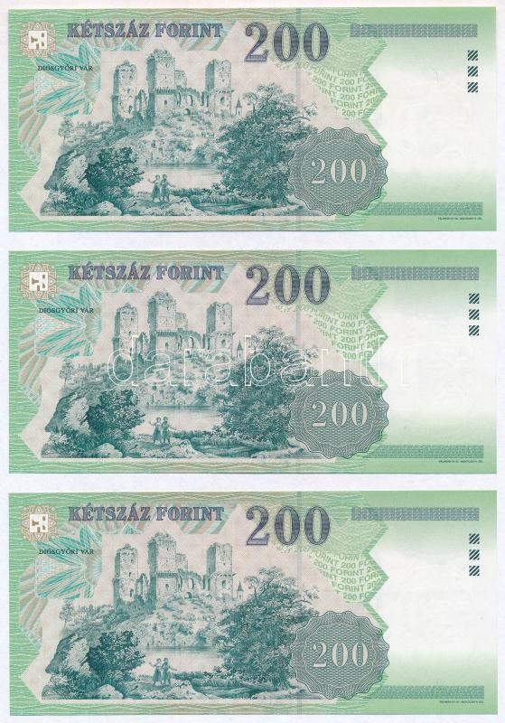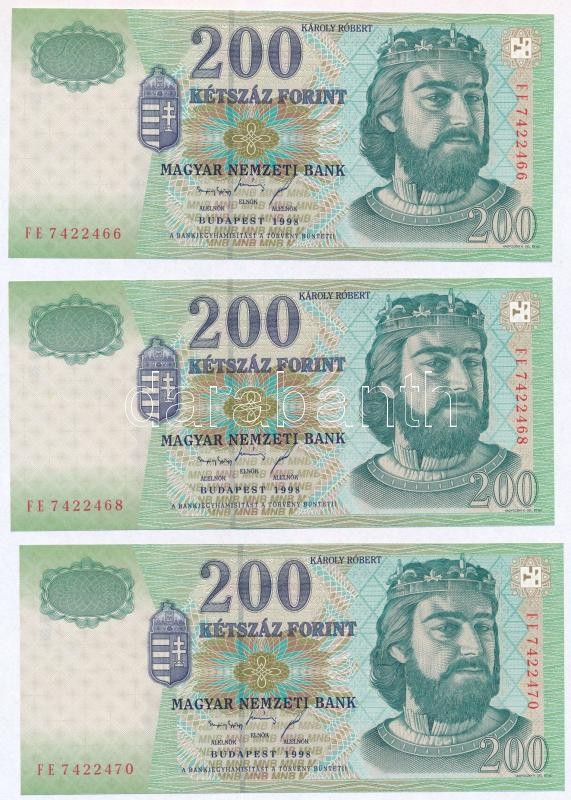 1998. 200Ft (3x) egyugrásos sorszámkövetők, "FE" sorozatjel ... https://www.darabanth.com/de/350-Fernauktion/350.0/Numismatik/Ungarische-Banknoten~1000007/1998-200Ft-3x-egyugrasos-sorszamkovetok-FE-sorozatjel-TI~II1993976