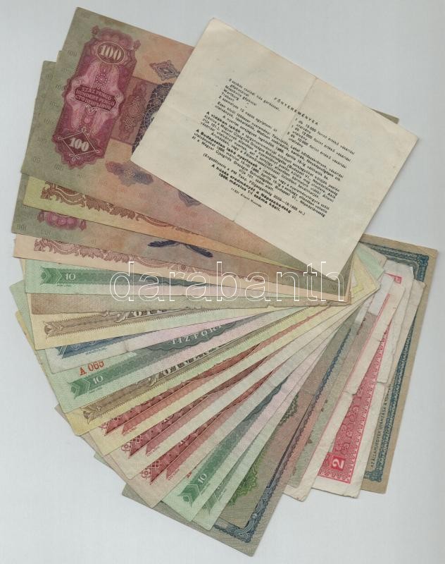 Beschreibung: 23db-os vegyes magyar korona, pengő és forint bankjegy, közte egy szerencsesorsjegy T:III-III-