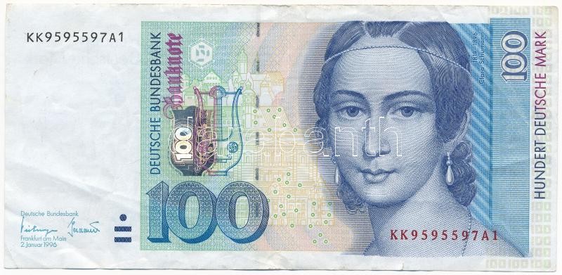 Germany 1996. 100 Mark C:F https://www.darabanth.com/de/350-Fernauktion/350.0/Numismatik/Weltweit-Banknoten~2500073/Nemetorszag-1996-100M-TIII-Germany-1996-100-Mark-CF~II1993649