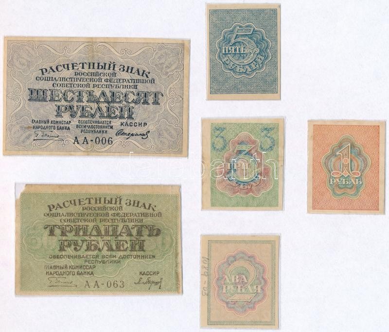 Beschreibung: Szocialista Szövetségi Szovjet Köztársaság 1919. 1R + 2R + 3R + 30R + 60R + 1921. 5R mind lezárt fóliában T:III egynél sarokhiány