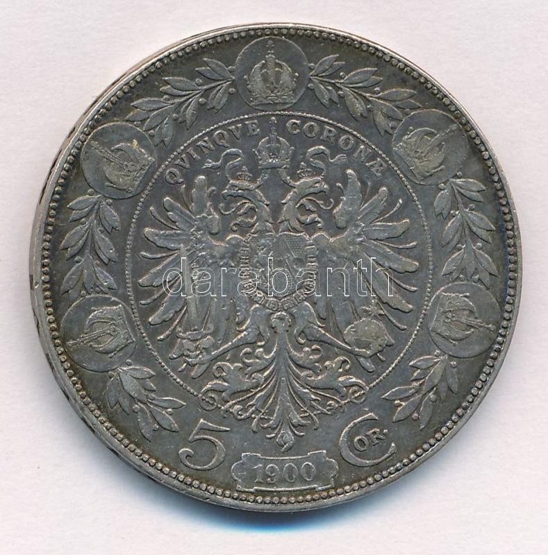 Austria 19... https://www.darabanth.com/de/350-Fernauktion/350.0/Numismatik/Weltweit-Munzen~1000014/Ausztria-1900-5K-Ag-Ferenc-Jozsef-T2-patina-Austria-1900-5-Corona-Ag-Franz-Joseph-CVF-pat~II1990565