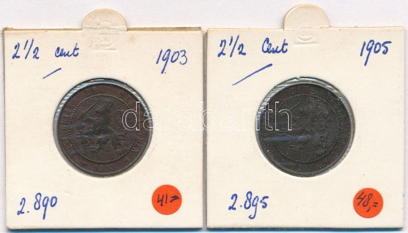 Netherlands 1903-1905. 2 1/2 Cents (2x) Br C:AU