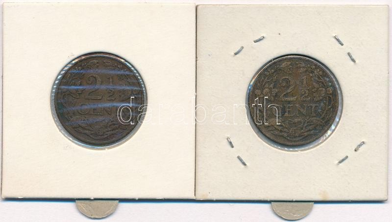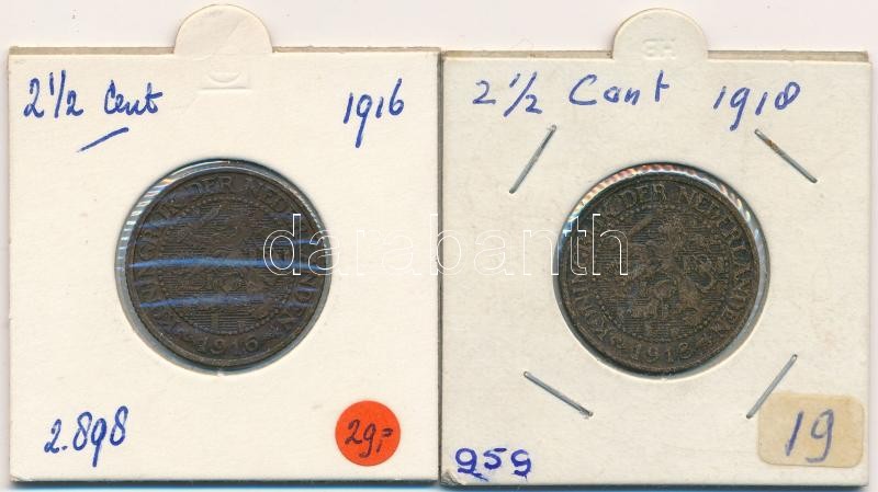 Hollandia 1916-1918. 2 1/2c Br (2x) T:2,2- patina Netherlands 1916-1918. 2 1/2 Cents (2x) Br C:XF,VF patina Krause KM#150