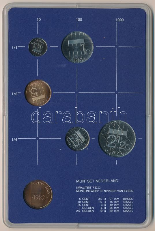 Hollandia 1982. 5c-2 1/2G (5xklf) + "Utrechti Verde" zseton plasztiktokos szettben T:1 Netherlands 1982. 5 Cents - 2 1/2 Gulden (5xdiff) + "Utrecht Mint" jeton in plastic case C:UNC