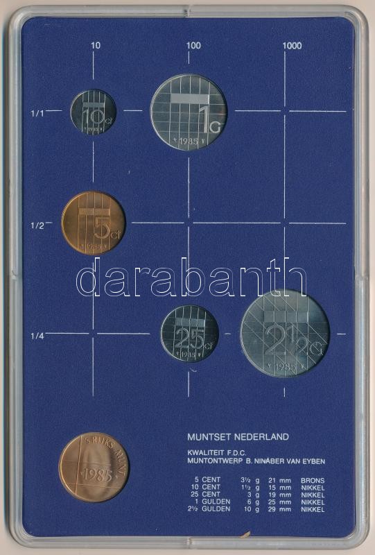 Hollandia 1985. 5c-2 1/2G (5xklf) + "Utrechti Verde" zseton plasztiktokos szettben T:1 Netherlands 1985. 5 Cents - 2 1/2 Gulden (5xdiff) + "Utrecht Mint" jeton in plastic case C:UNC