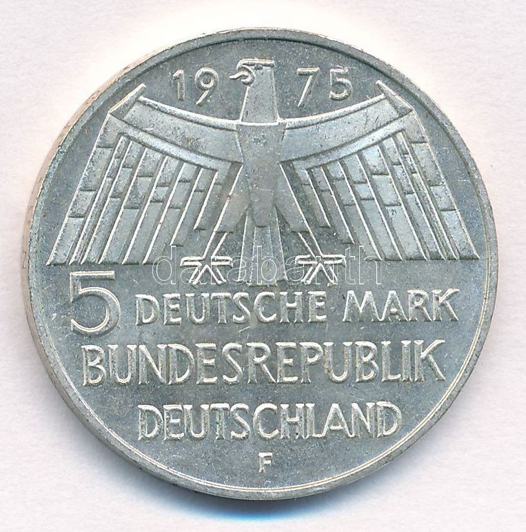 NSZK 1975F 5M Ag "Európai műemlékvédelmi év" T:1- FRG 1975F 5 Mark Ag "European Monument Protection Year" C:AU Krause KM#142.1