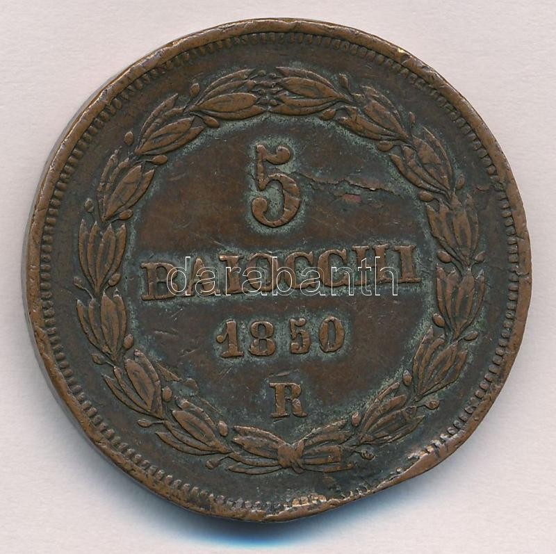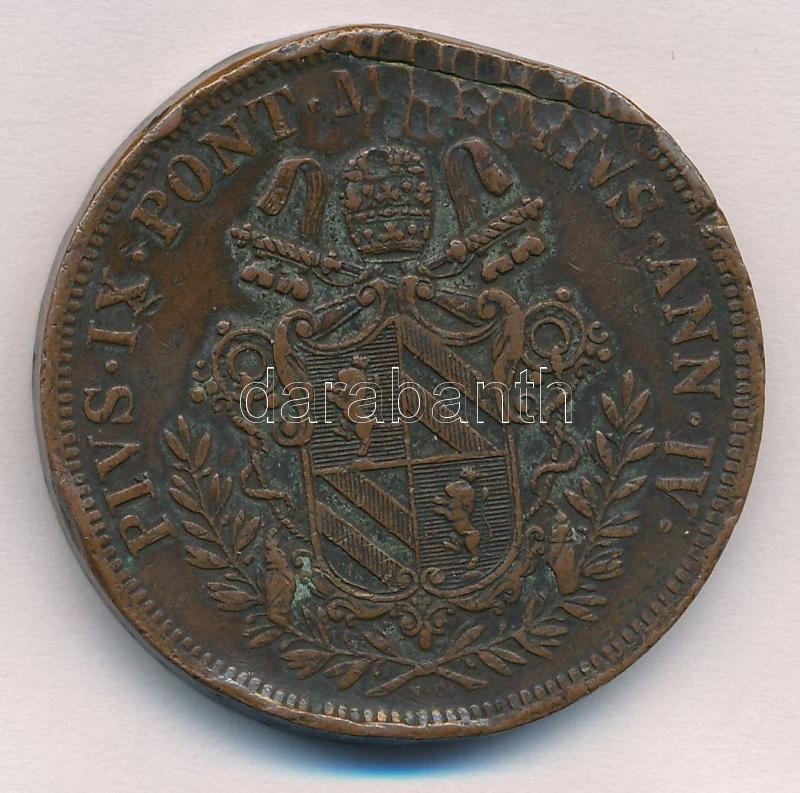 Olasz Államok / Pápai Állam 1850-IVR 5B Cu "IX. Pius" T:2-,3 ph.,ü. Italian States / Papal States 1850-IVR 5 Baiocchi Cu "Pius IX" C:VF,F edge error,ding Krause KM#1346