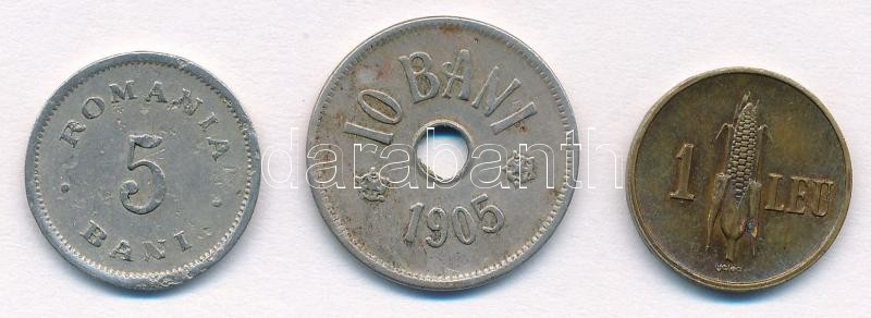 Románia 1900. 5b Cu-Ni + 1905. 10b Cu-Ni + 1941.1L Ni-sárgaréz T:1-,2,2- patina Romania 1900. 5 Bani Cu-Ni + 1905. 10 Bani Cu-Ni + 1941. 1 Leu Ni-Brass C:AU,XF,VF patina