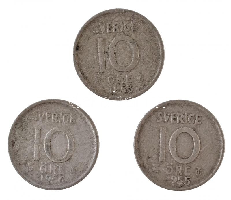 Svédország 1953-1956. 10ö Ag (3xklf) T:2 Sweden 1953-1956. 10 Öre Ag (3xdiff) C:XF Krause KM#823