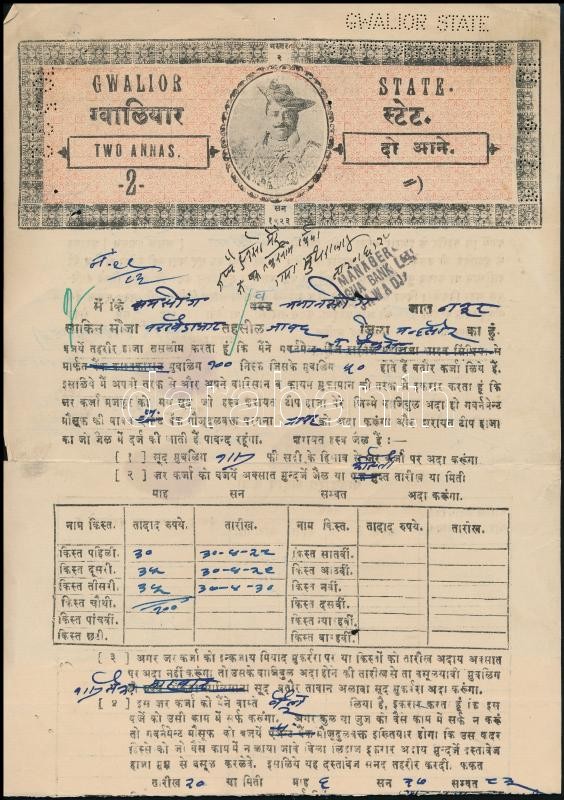 cca 1943 India, adóív 2 Annás illetékbélyeggel / India tax sheet with... https://www.darabanth.com/de/350-Fernauktion/350.0/Philatelie-und-Postgeschichte-Ungarn/Stempelmarken~16/cca-1943-India-adoiv-2-Annas-illetekbelyeggel-India-tax-sheet-with-document-stamp~II1821995
