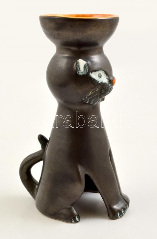 Beschreibung: Iparművészeti Vállalatos macska alakú, mázas kerámia gyertyatartó, jelzett, hibátlan, m: 23,5 cm