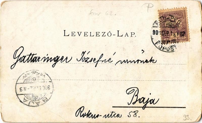 Beschreibung: 1900 Budapest V. Ferenc József rakpart, gőzhajók. Kiadja Rudas Gusztáv (kopott sarkak / worn corners)