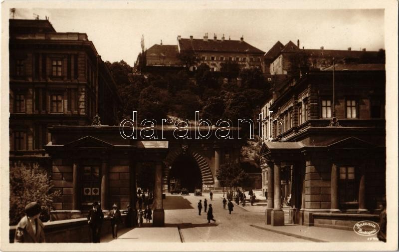Beschreibung: Budapest I. Lánchíd hídfő az alagúttal, automobil, emeletes busz